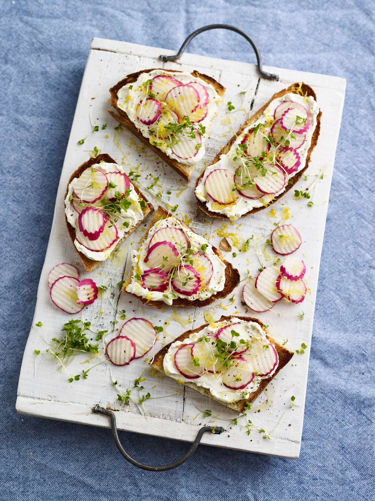 Cream cheese and radish on sourdough toast